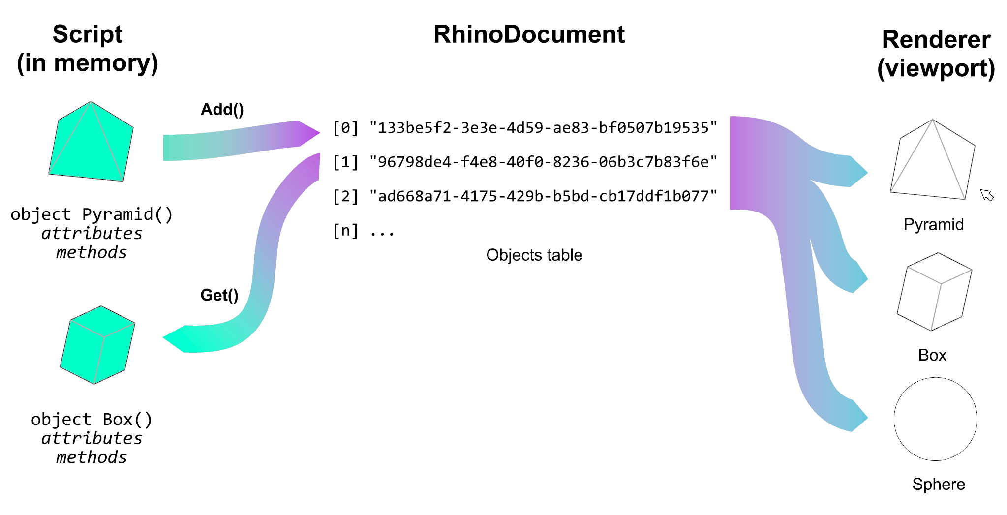2) This object is then given a GUID (Globally Unique Identifier) and is added to the document’s objects table which associates the GUID to the geometric data of the object.