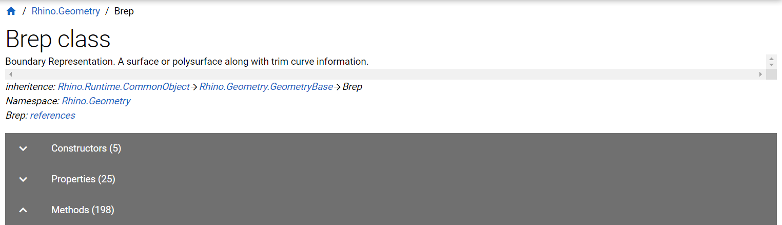 API Documentation for BREP Class