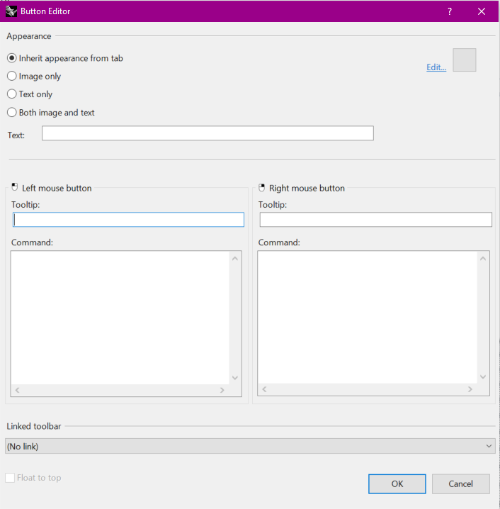 If you think you are going to reuse the macro you can embed it in a custom command that you will name. This command will appear as a button in the main UI as every other command. To do so go click right on the top tool bar and select `New Button…” from the menu. A pop-up window as this one will appear: