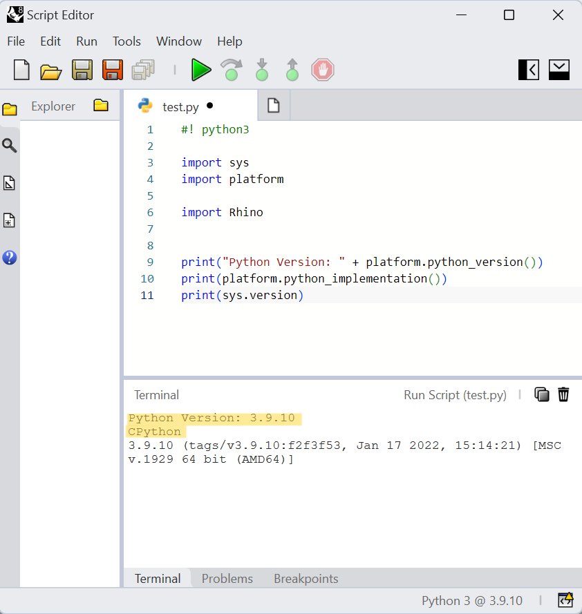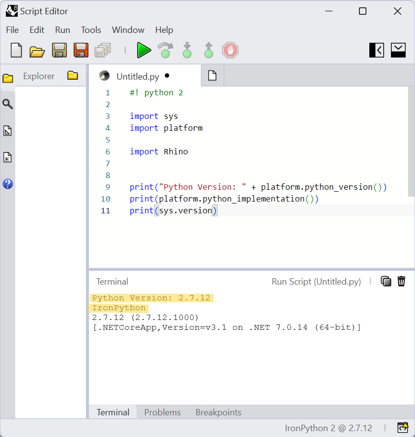 CPython: is the standard Python interpreter. It is the one that you can download from the [Python website](https://www.python.org/downloads/). It is available from *Rhino8* and it can interpret Python3.x scripts. This is what we will use in this course.