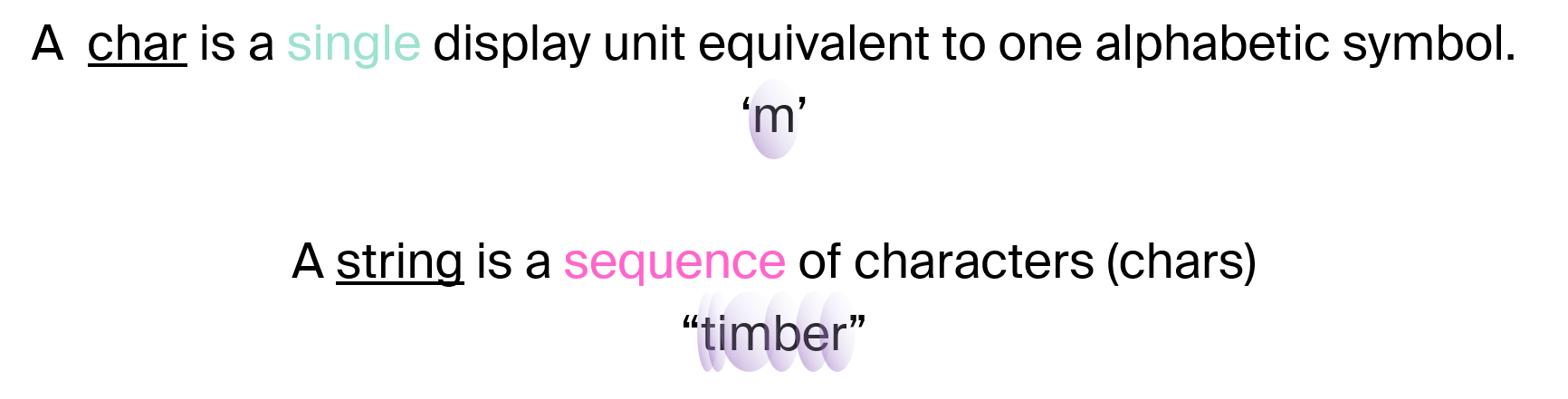 This means that each char has its position in a string and can be retrieved by accessing its index (its numerical position in the string in this case).