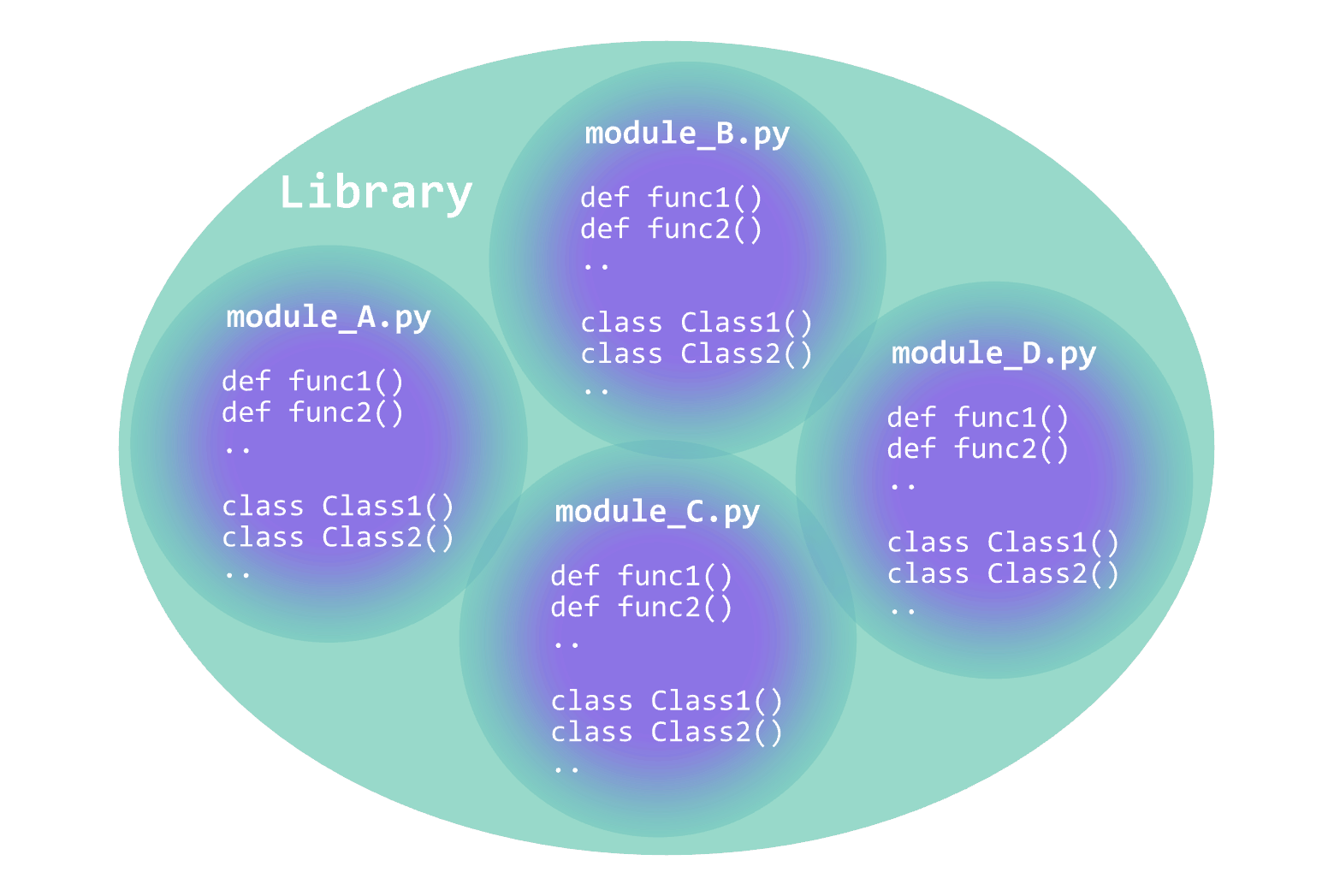 A library is a collection of modules. It is a way to organize and distribute code. Python has a large standard library, and there are many other libraries available for specific tasks.